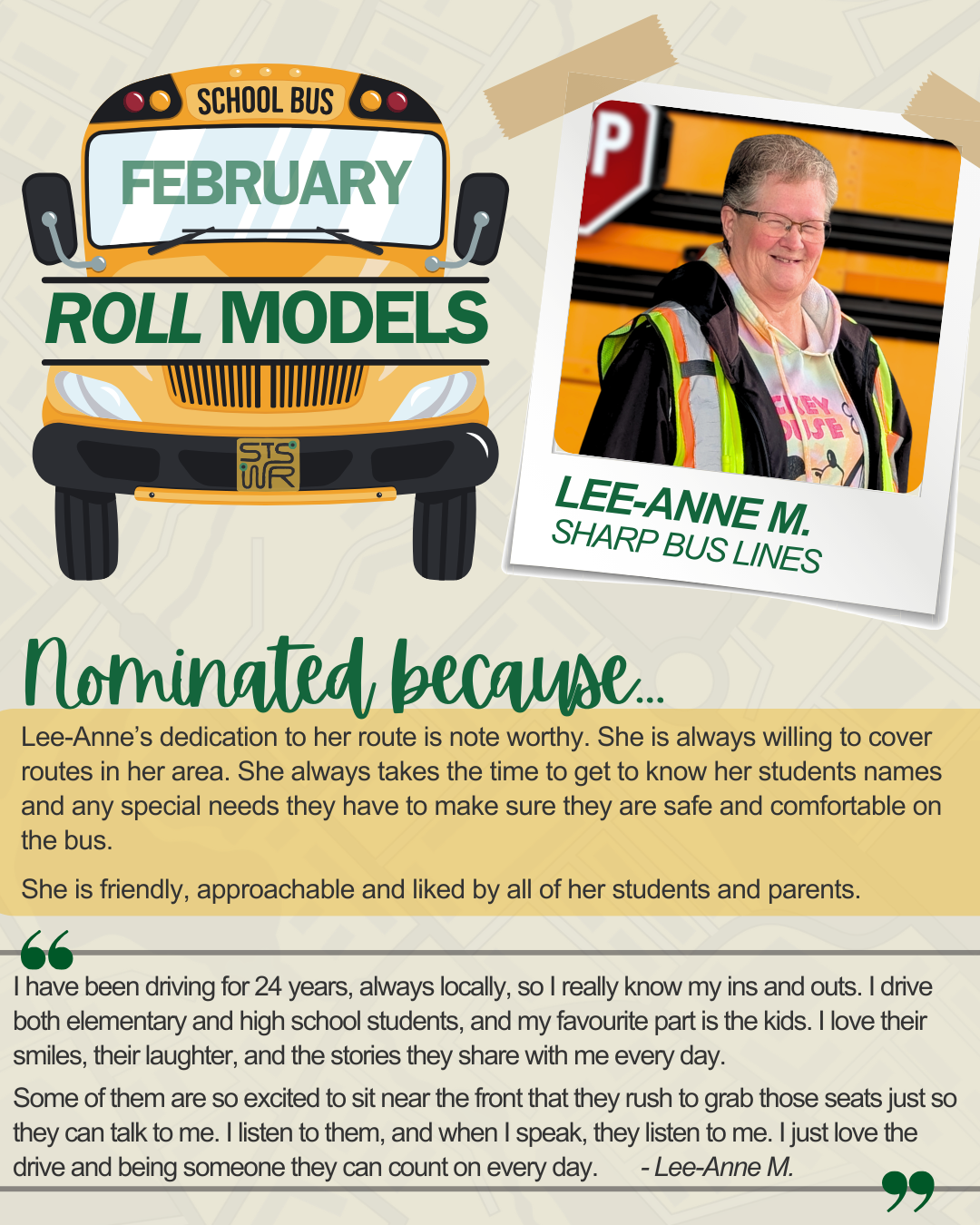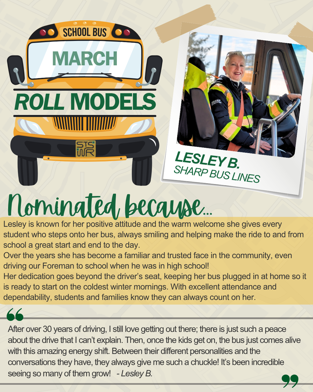We are excited to introduce ROLL Models, a new monthly spotlight celebrating the incredible bus drivers who go above and beyond every day!