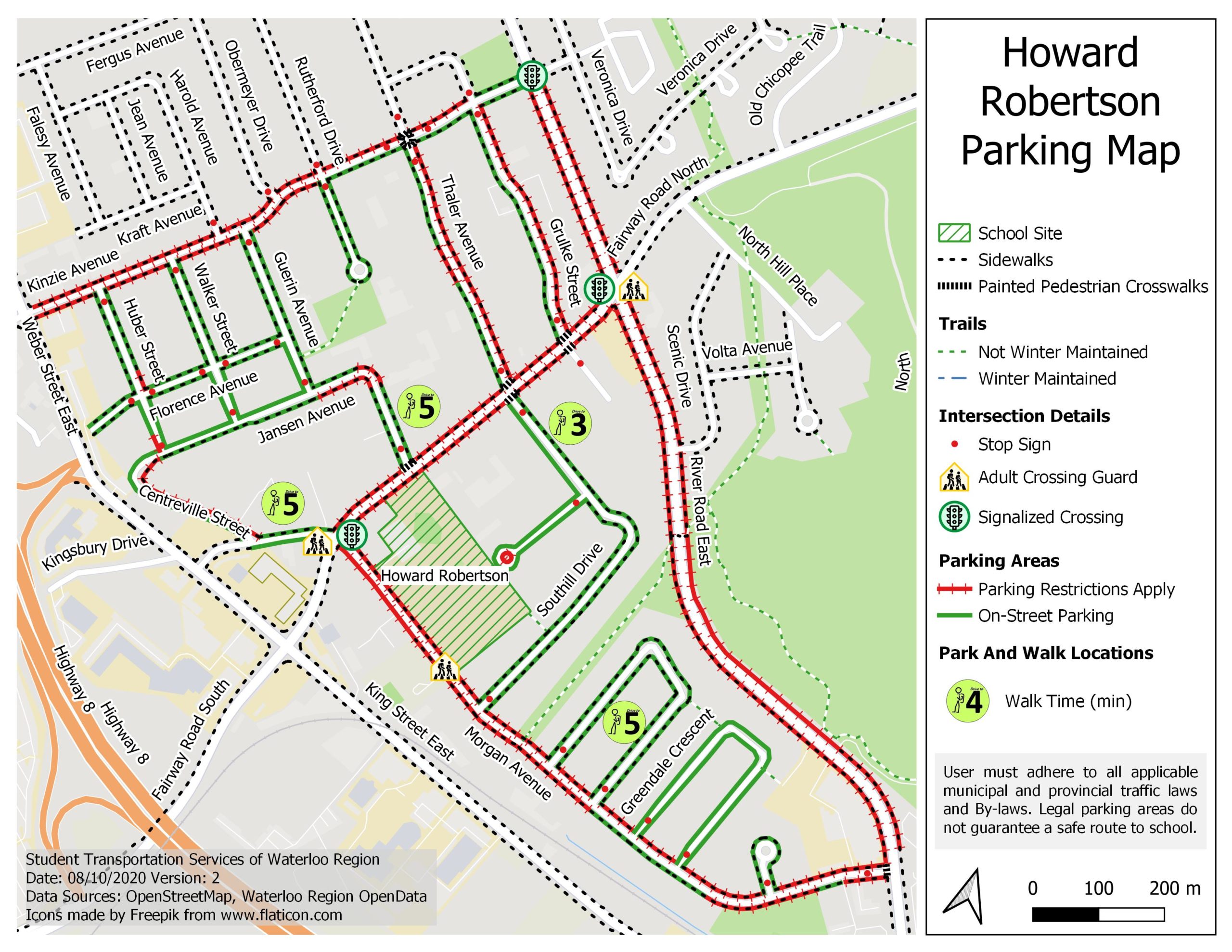 Use this map to find safe and legal spaces to park just a few minutes away from the school to reduce dangerous congestion and allow students a safer walk to school. Thank you!